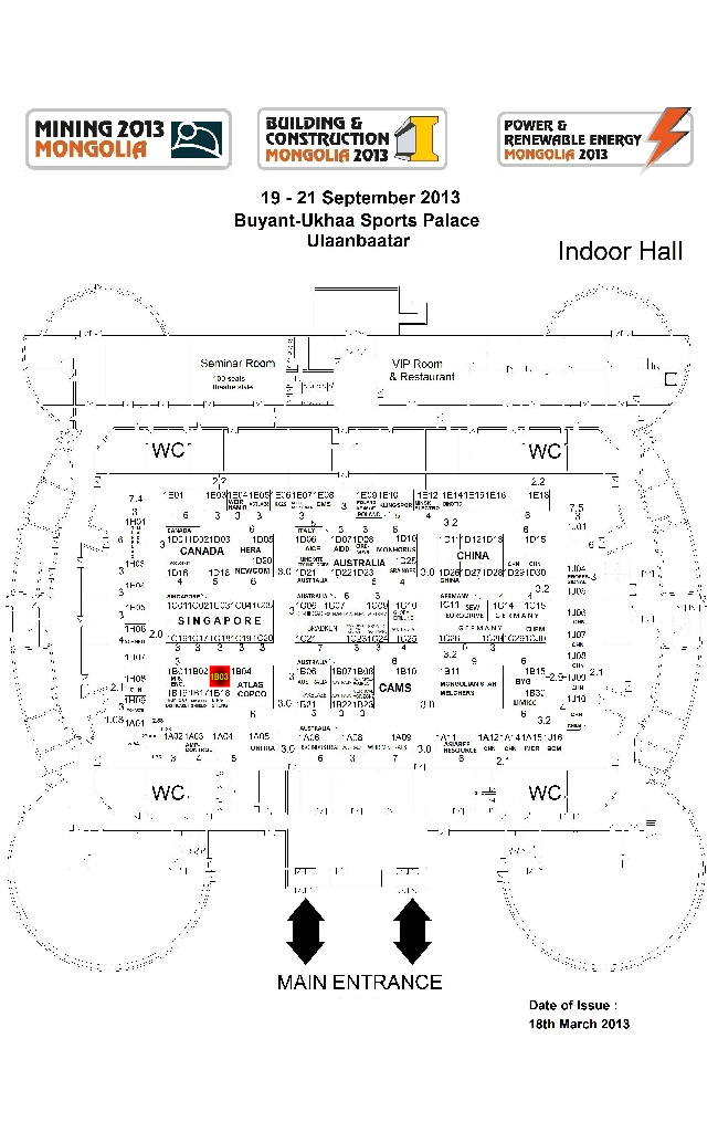 Cet événement aura lieu à Buyant-Ukhaa Palais des Sports en UB pendant 19-21 Septembre 2013, fournissant la plate-forme pour les entreprises souhaitant démontrer des solutions aux problèmes d'infrastructure à la fois en termes de service de l'industrie minière et le secteur de la construction plus large de l'économie.