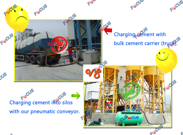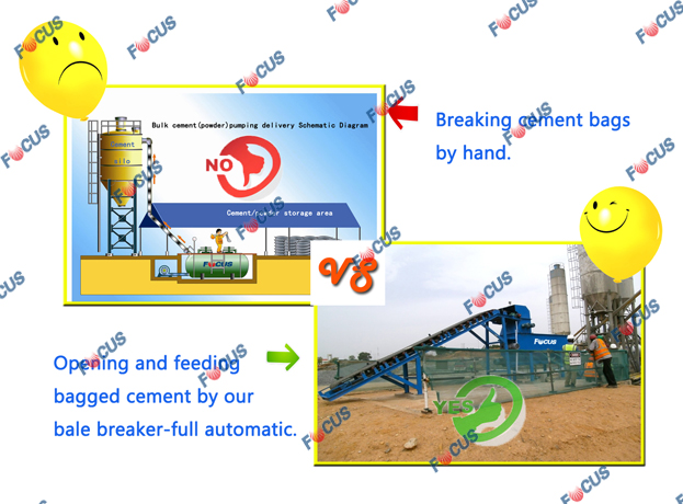 Cement charging becomes much more efficient with those two equipments, as there are no bulk-cement carriers at client’s construction sites and they have only got cement available in 50kg and 100kg bags.