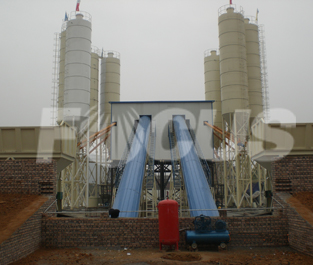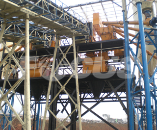 Two sets of SICOMA mixers standing side by side equipped with belt conveyors and mixer rooms, saving a lot of cost and space with high output capacity; Two discharging units installed.